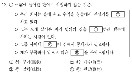 하지만 한자의 영역은 개인마다 가지는 역량이 너무 다르기 때문에 어쩌면 쉽게 답을 고를 수 있을지도 모르겠다.