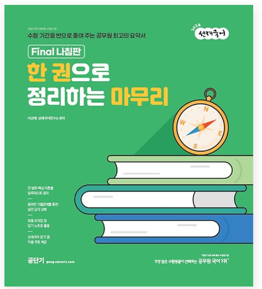 공무원 시험을 처음 준비하는 사람이라면 국어 기본서 '수비니겨'를 추천한다. 배경지식이 있거나 재수생이라면 한 권 마무리로도 기본 내용은 충분하다.