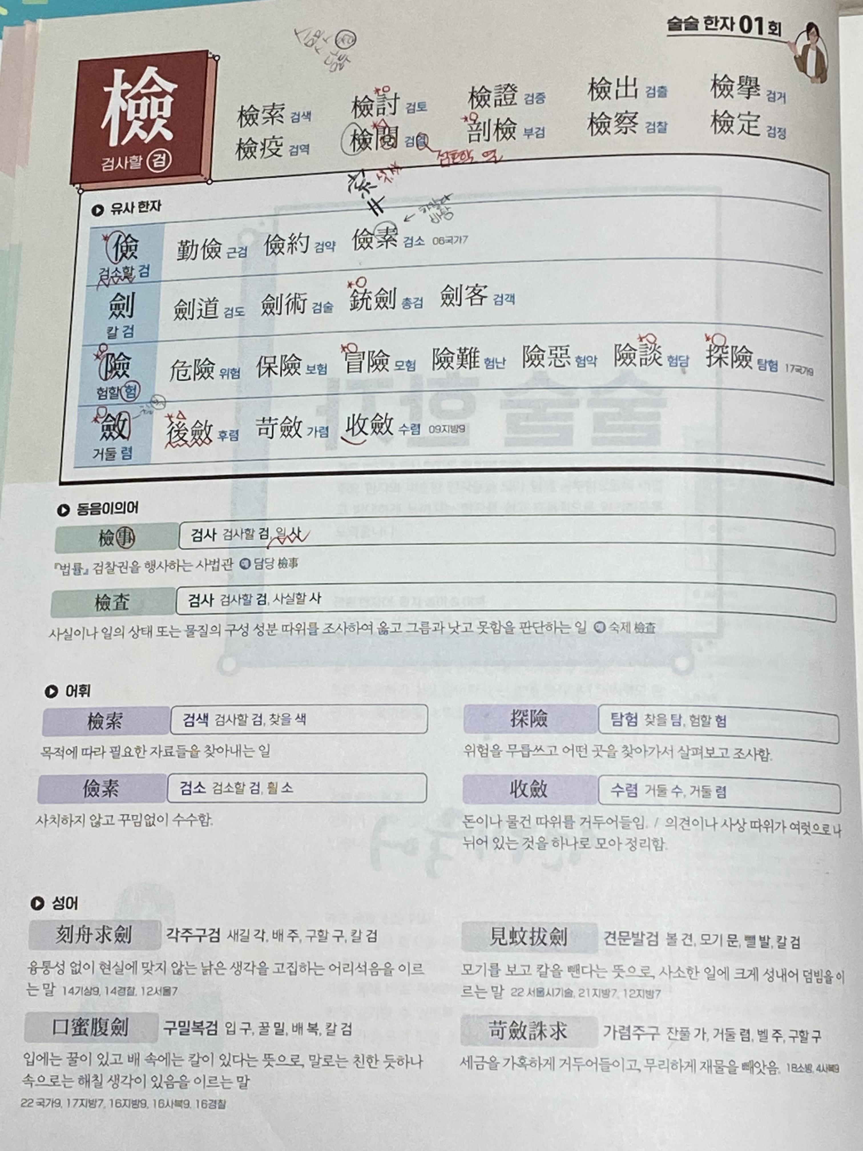기출문제, 선재국어암기앱과 술술한자만 공부해도 충분하다. 수험기간이 여유로운 사람이라면 김병태 국왕한자 수업을 추천한다.