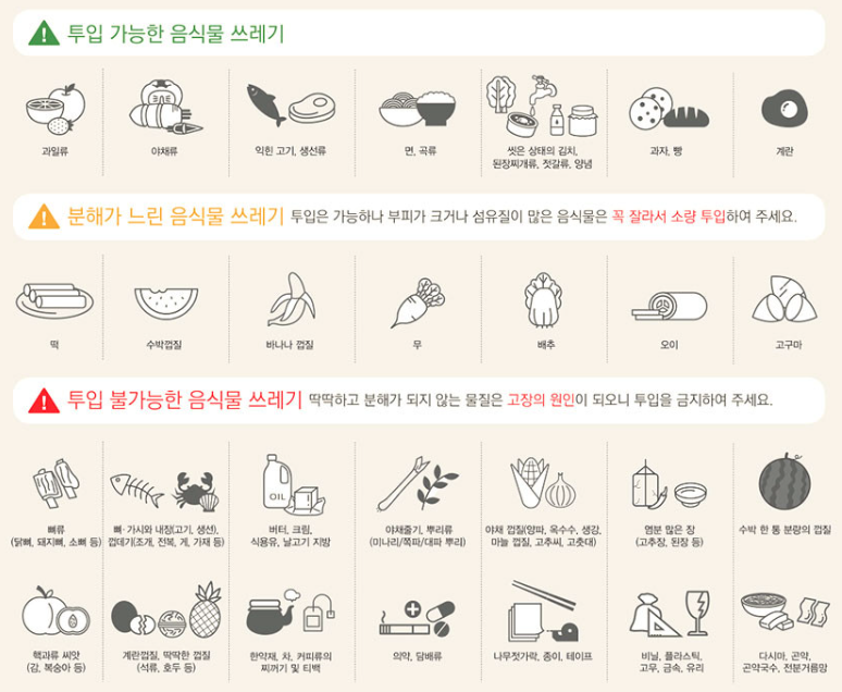 그리고 (중요!!)린클을 3년 동안 냄새 없이 사용한 노하우는 되도록이면 양념류나 익힌 음식을 음식물 처리기에 넣지 않는 것이다.