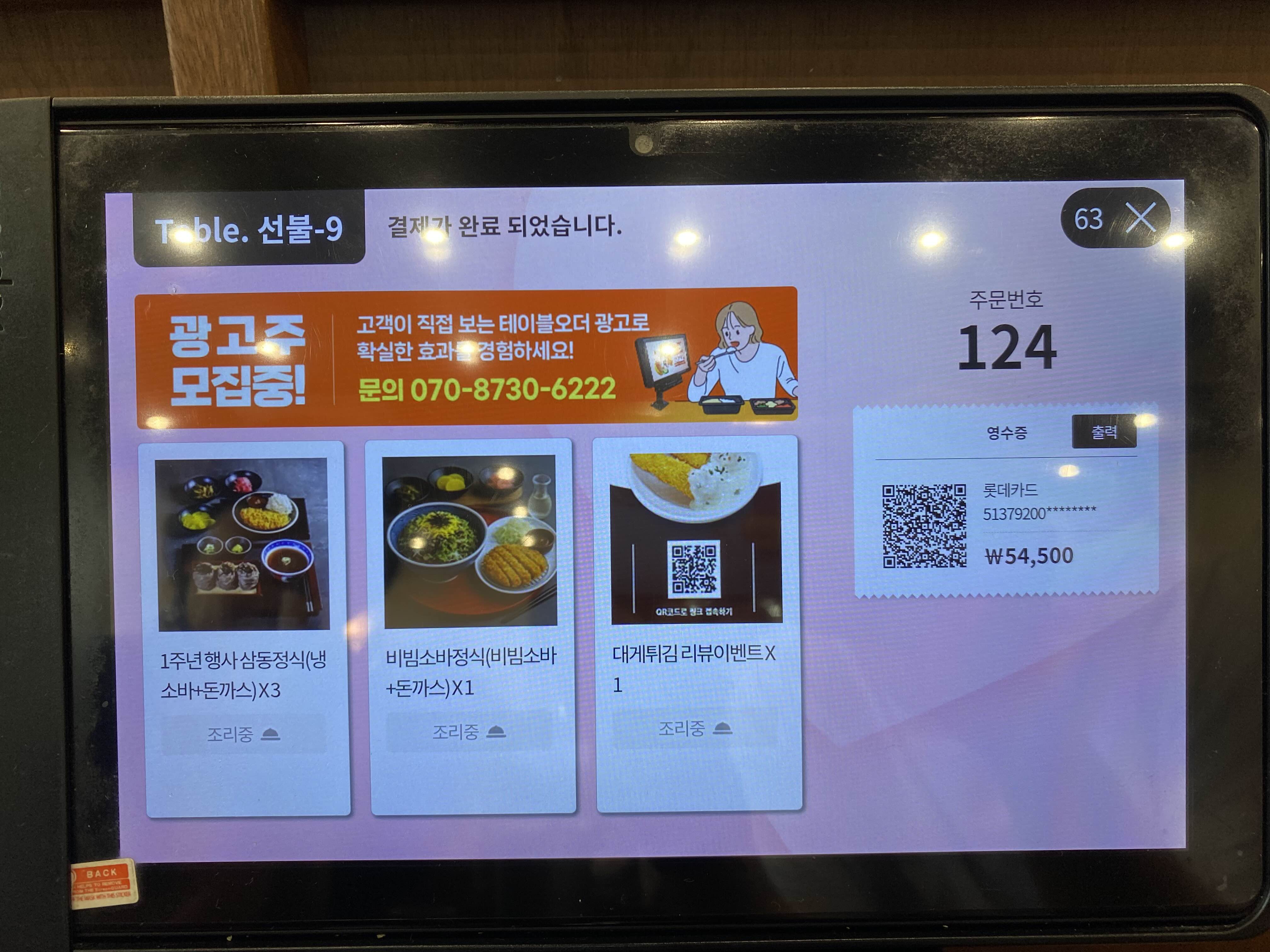 테이블마다 주문과 계산을 할 수 있는 키오스크가 마련돼 있어 편하게 주문을 할 수 있다.