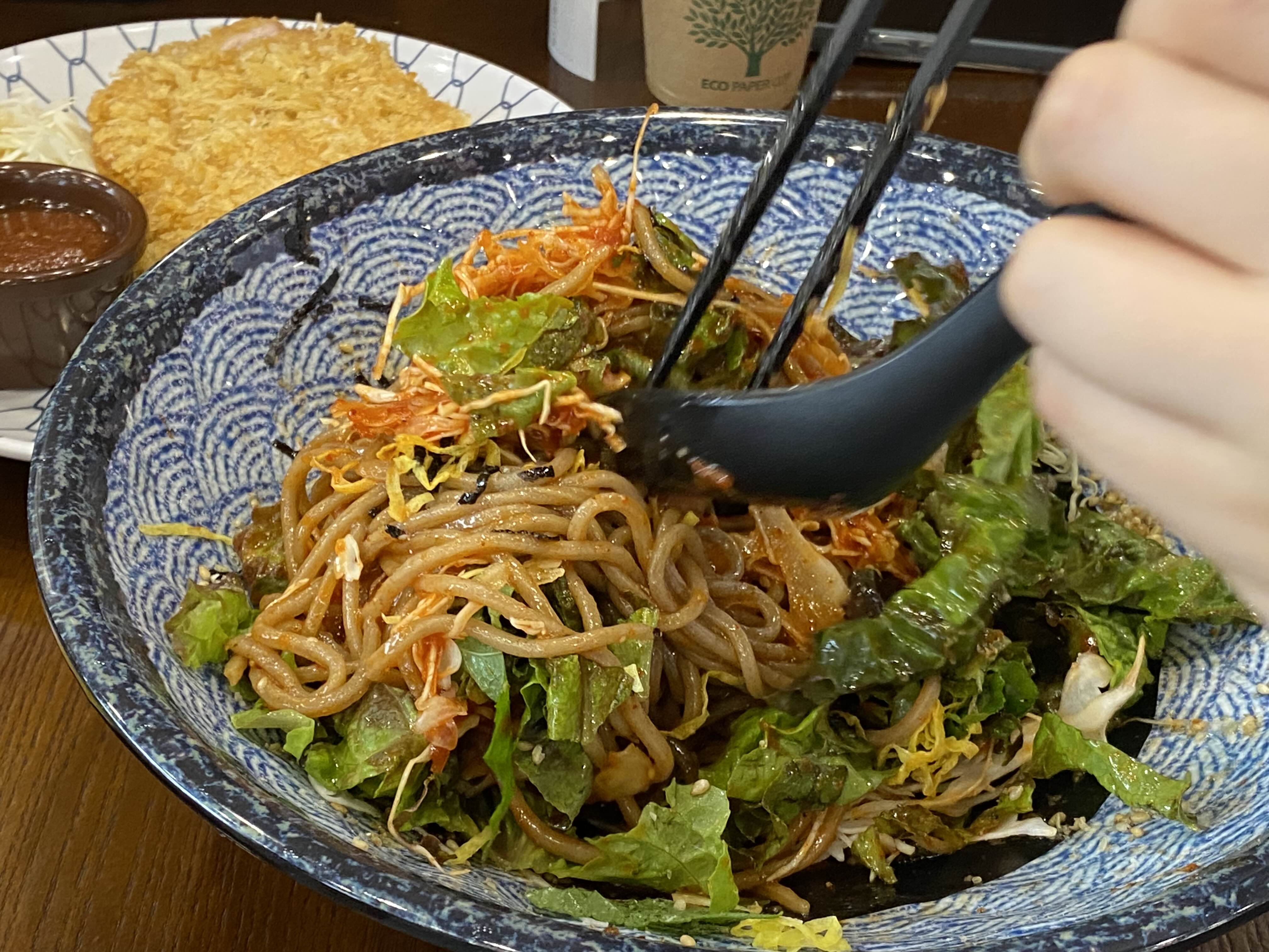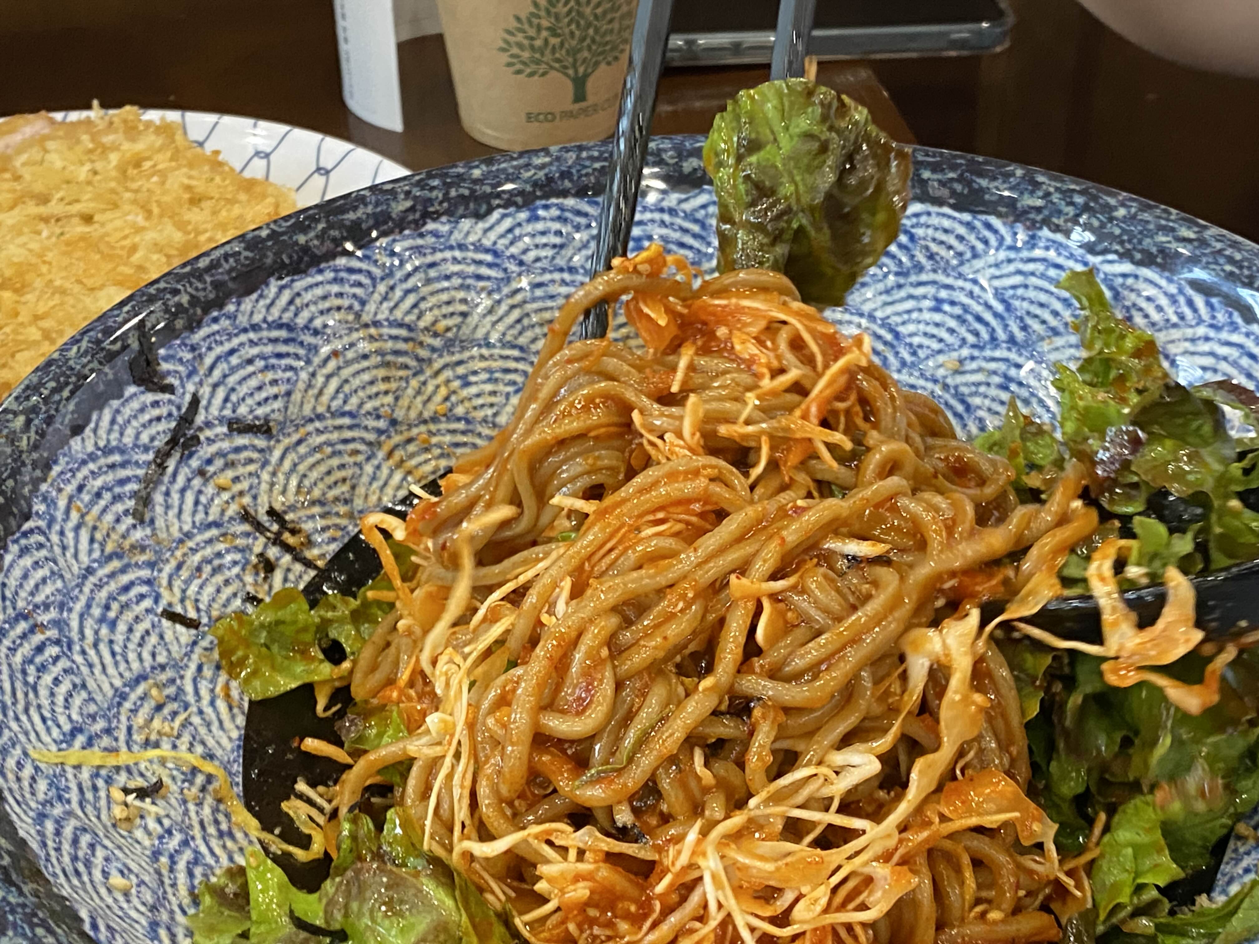 비빔소바는 양배추와 잎채소가 듬뿍 올라가 있고 매콤새콤달콤한 소스는 입덧을 가라앉히기에 부족함이 없었다.