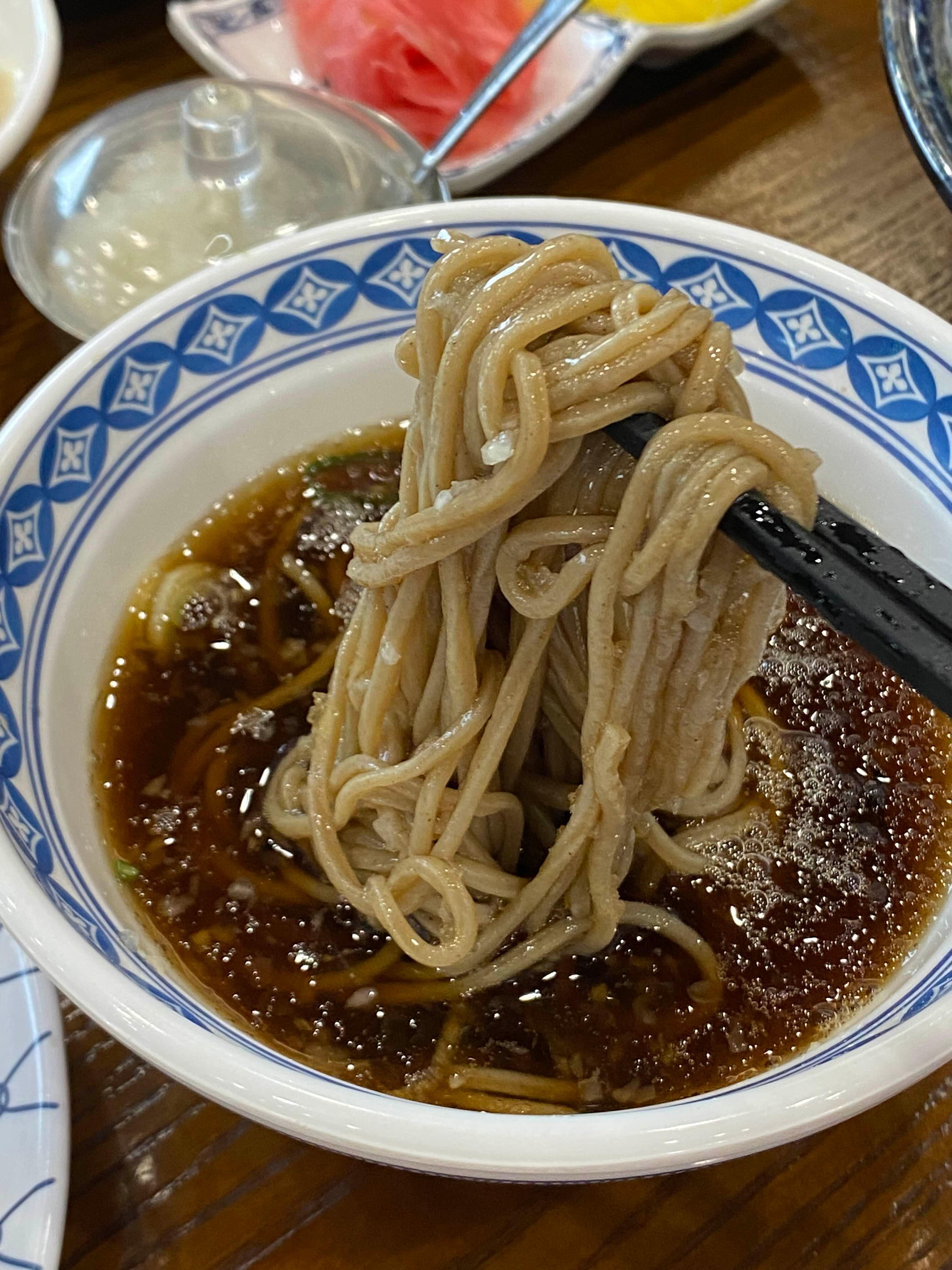 양이 적지 않은 소바 3덩이에 가쓰오부시 향이 물씬 다는 쯔유소스에 면을 푹 담가 먹었다.