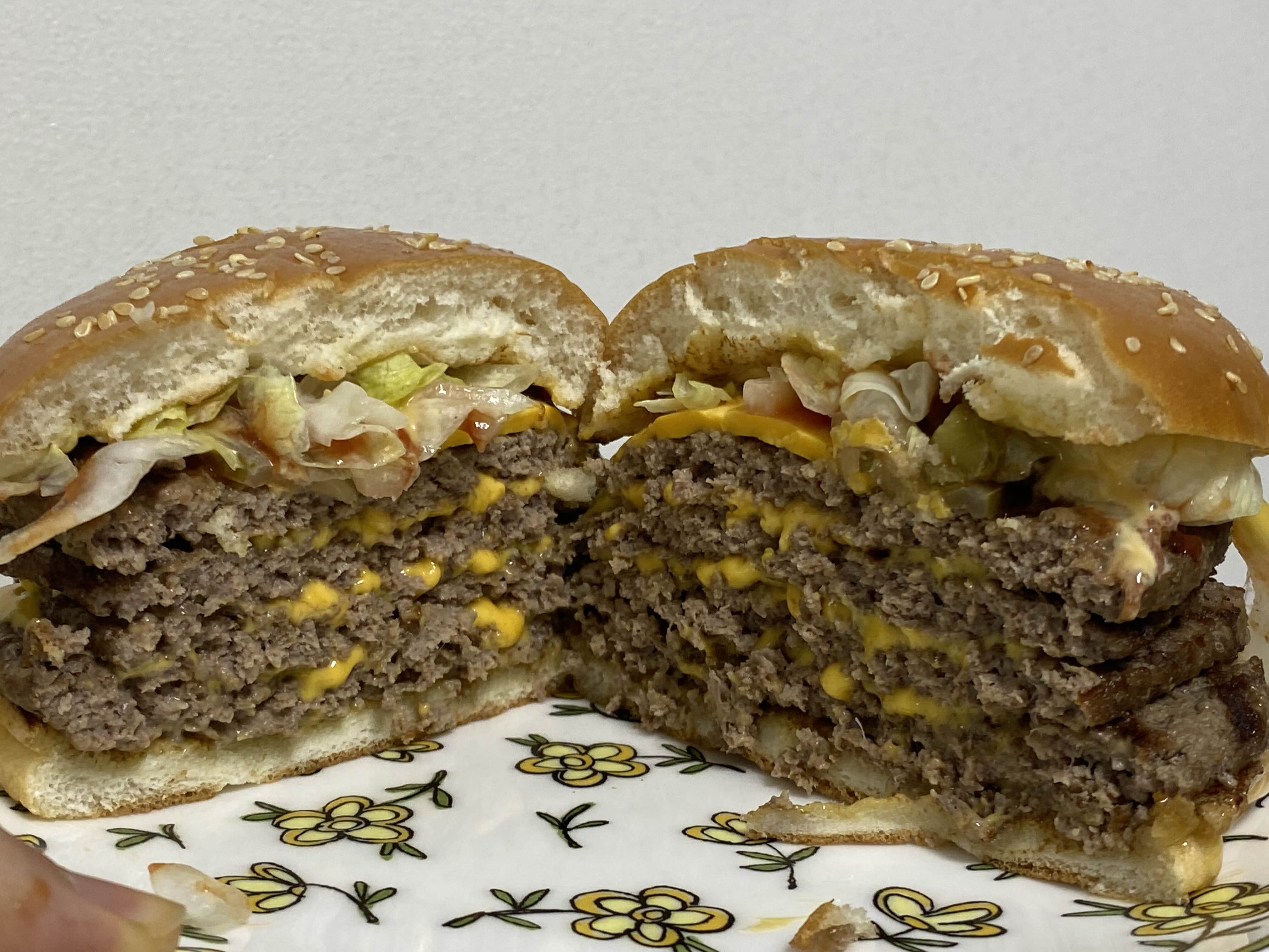 일단 패티가 4장이나 들어가 있어 버거 자체 무게만 해도 꽤 무거웠고 치즈 또한 8장이 들어가 있어 고기치즈고기치즈의 풍부한 맛을 제공하기 때문에 꽤 포만감을 주는 게 장점이다.